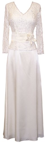 Mother Of The Bride Formal Wedding Party Gown Beaded Lace & Satin MOB Dress, Medium, Ivory Reviews