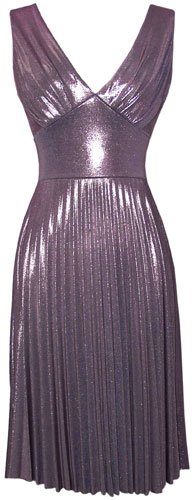 Timeless and flattering metallic lame stretch jersey dress, pullover, bust is lined, skirt is unlined.