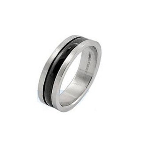 Offering beautiful, charismatic style in tough stainless steel, this 6mm band is an excellent choice. It's crafted in polished stainless steel and features silver tones edges and a black center line. Stainless steel is an attractive and easy-care jewelry metal that offers lasting quality and durability. Different size available.