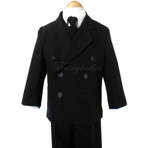 High Quality Tailored made Double Breasted Suit set : This suit is perfect for Weddings, and any special occasions. Brand new, 5 piece suit set, in dark black, and white shirt with adjustable Long tie. Included in this listing: * Double Breasted Jacket w/Notch Lapel * White dress shirt * Fully lined Full back vest * Long Pants * Adjustable Long tie . The jacket and the vest are fully lined. Please follow up with the measurements from the below size chart to find you exact size.