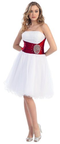 Strapless Cocktail Party Junior Prom Dress #611 (18, White/Red) Reviews
