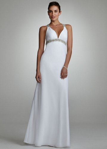 Make an entrance no one will forget in this stunning sequin trim chiffon gown! Sequin trim chiffon gown features intricate eye-catching illusion detail. Empire waist creates a flattering silhouette. Beaded open back adds tons of drama to this already beautiful gown. Fully lined. Imported. Dry clean. Wedding Dresses, Bridal Gowns, Bridal Dresses, Wedding Gowns
